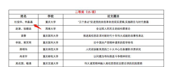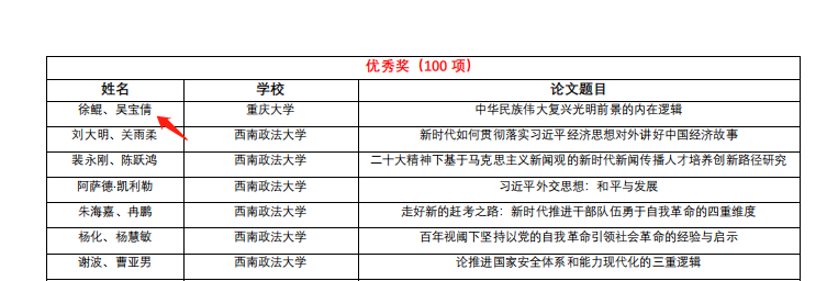 重庆市高校学习宣传贯彻党的二十大精神理论研讨会由中共重庆市委教育工作委员会主办、重庆邮电大学承办,于2022年12月2日顺利举办,本次研讨会共收到投稿论文400余篇,与本次会议征文主题相关的论文分送重庆市外5位专家匿名评审出结果。色戒 研究生吴宝倩、李晶晶在此次征文中获奖。