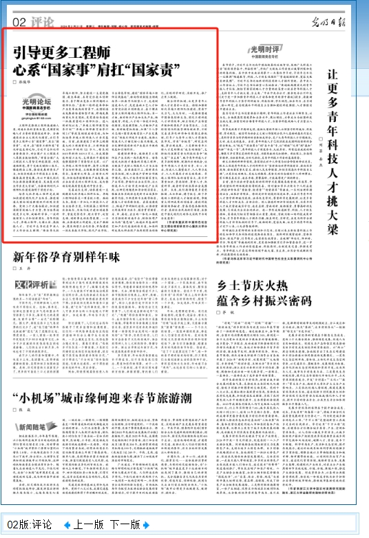杜俊华教授在《光明日报》第2版光明论坛上发表文章——《引导更多工程师心系“国家事”肩扛“国家责”》。
