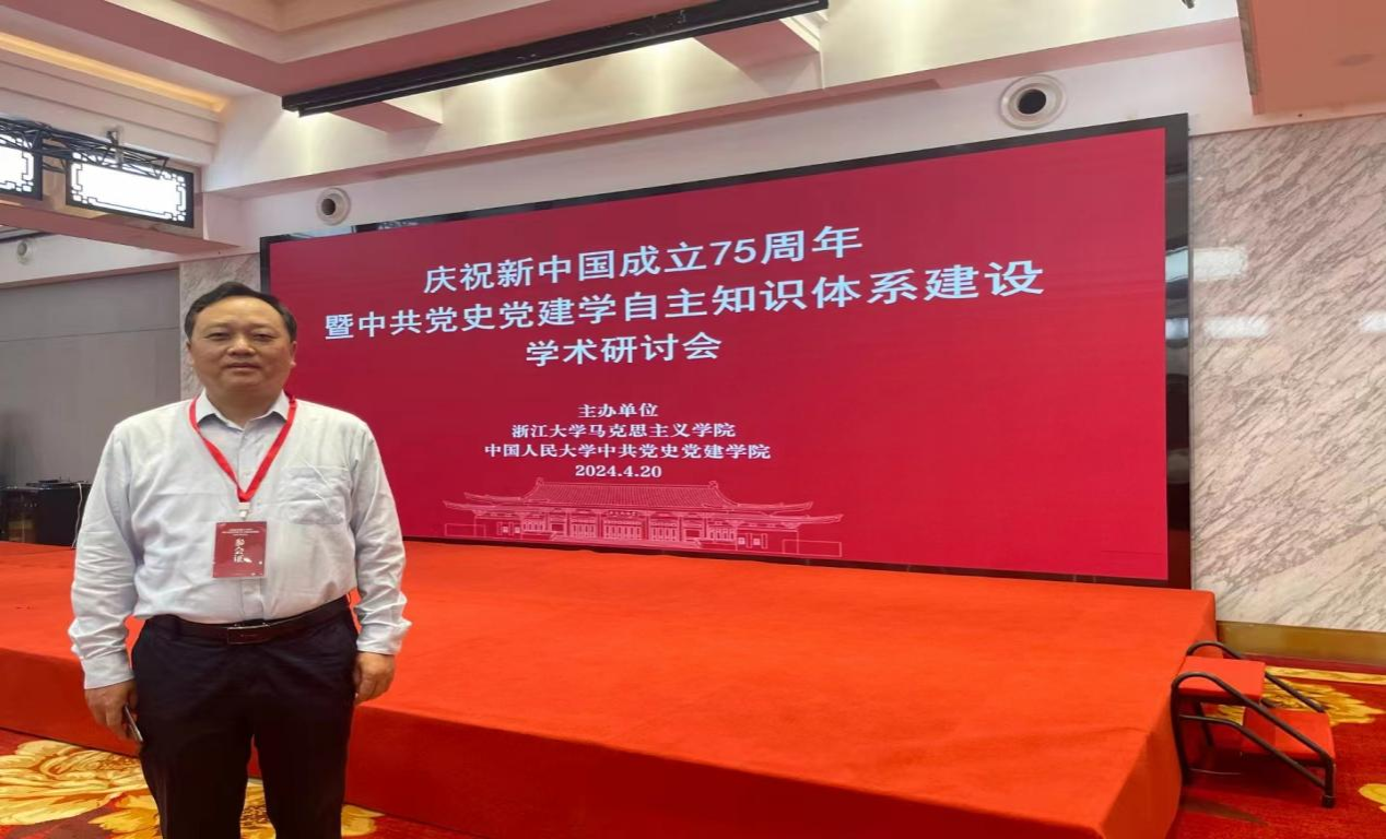 2024年4月19日至21日,“庆祝新中国成立75周年暨中共党史党建学自主知识体系建设学术研讨会”在浙江大学顺利召开。马院教授杜俊华赴浙江大学参会并作分论坛发言,金帅同学参会。